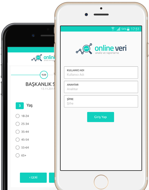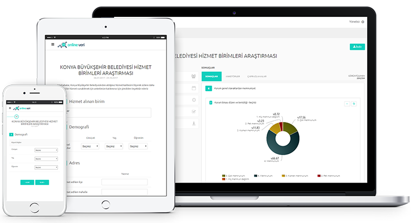 Online Veri'ye bilgisayarınızdan veya mobil cihazlarınızdan ulaşabilir, soru formları oluşturabilir ve raporlama yapabilirsiniz. Online bağlantı üzerinden veya mobil uygulamadan çözülen anketler ile anket formu ve veri girişi işlemlerinden kurtulabilirsiniz.